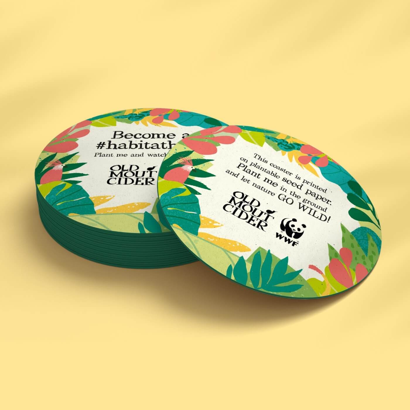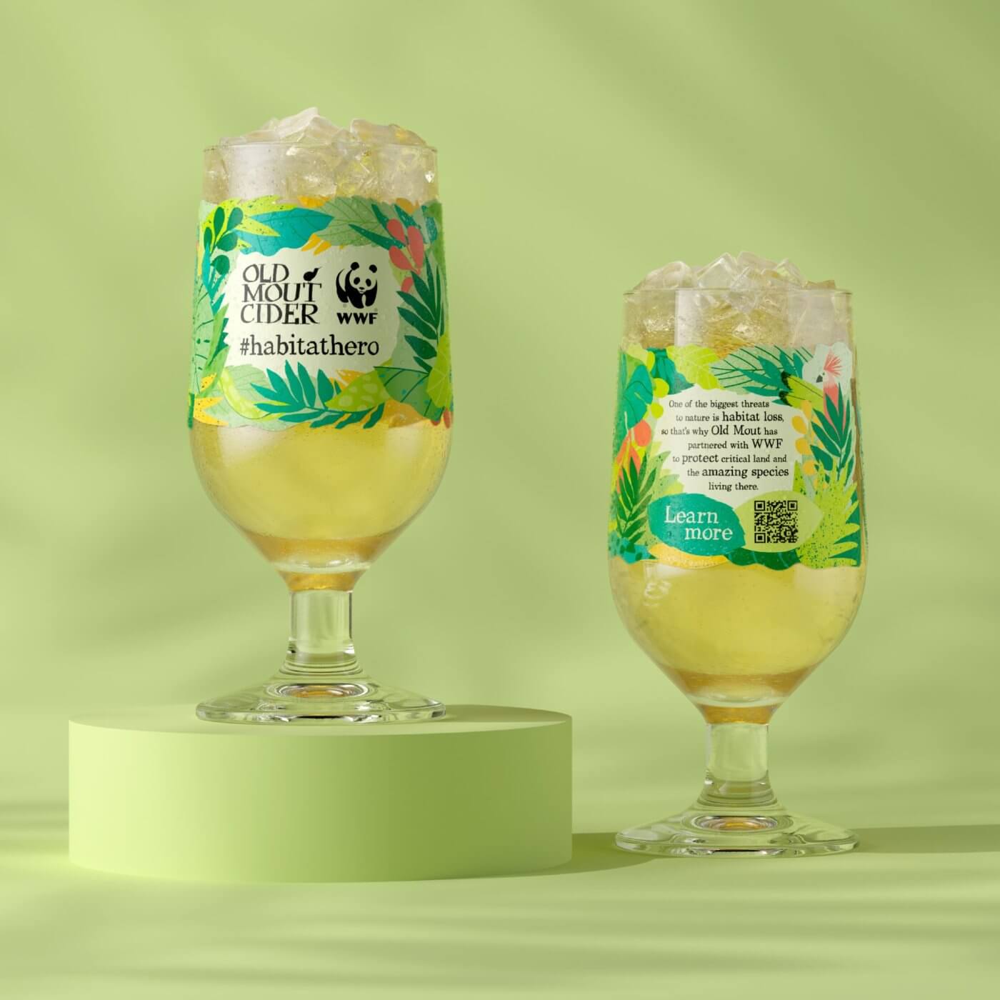 Illustrator Kim Sielbeck worked with Elmwood to craft a limited-edition design for Old Mout’s #HabitatHero 2022 campaign across their multipacks and glassware. She took design cues from their core mission in their partnership with WWF, echoing their efforts to protect habitats together to regrow the wild.